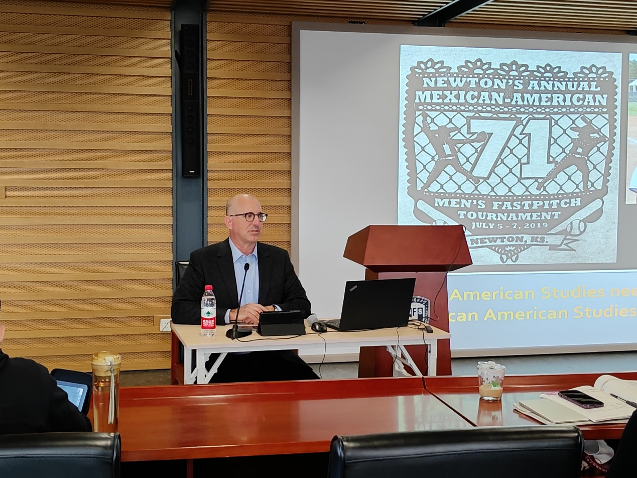 在中美“旧金山愿景”实施一周年即将到来之际,为加强中美人文交流,促进美国文化研究走向深入,10月25日,beat365唯一官方网站特邀美国堪萨斯大学美国学系主任、美国著名墨西哥裔民族志专家本·查佩尔(Ben Chappell)教授莅临“专英讲堂”,为全校师生做了题为“美国研究中的墨西哥裔美国人研究”的学术讲座。来自beat365唯一官方网站、英语学院、国际关系学院等兄弟院系师生近60人参加讲座。讲座由beat365唯一官方网站副院长仵胜奇主持。