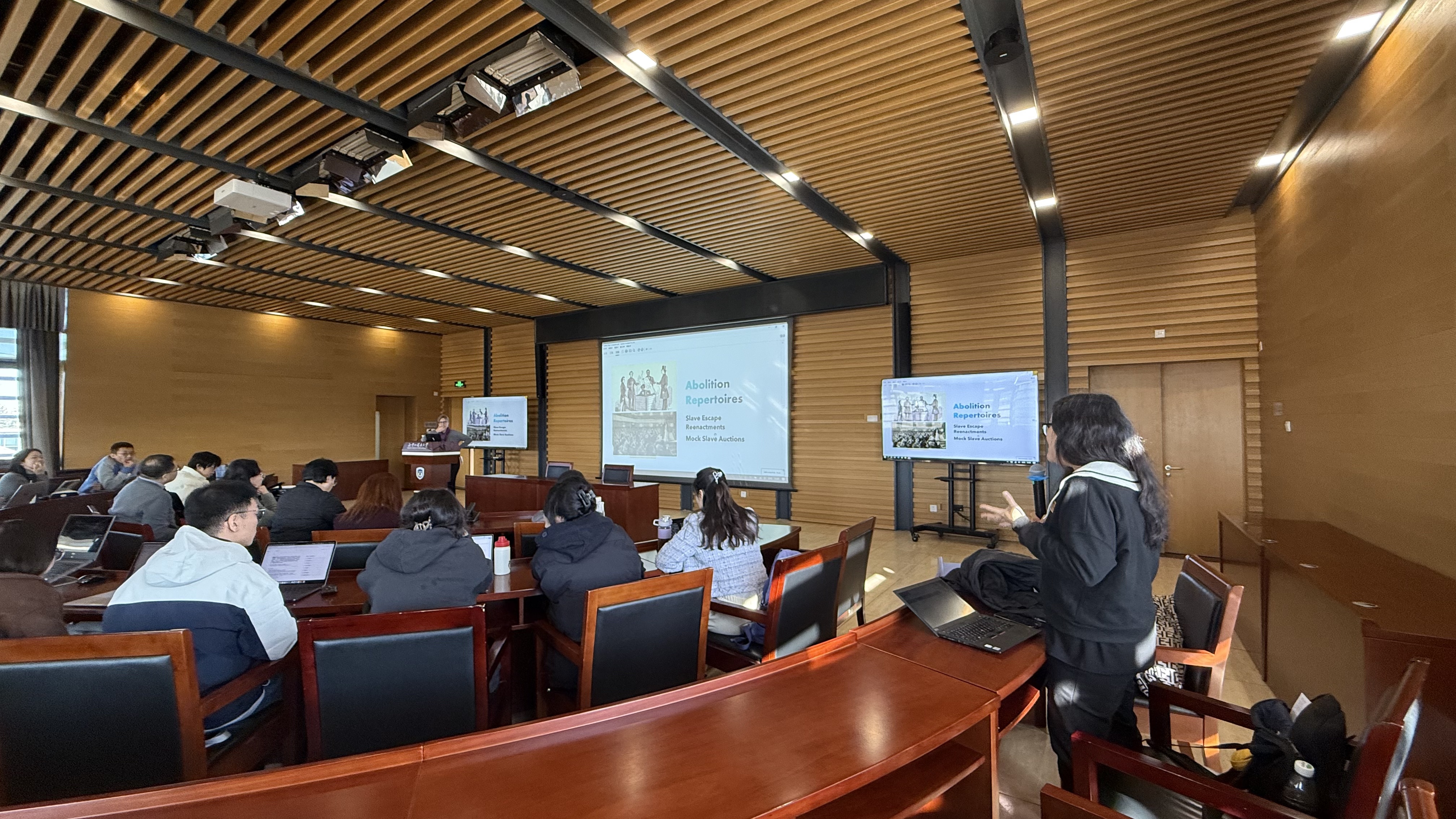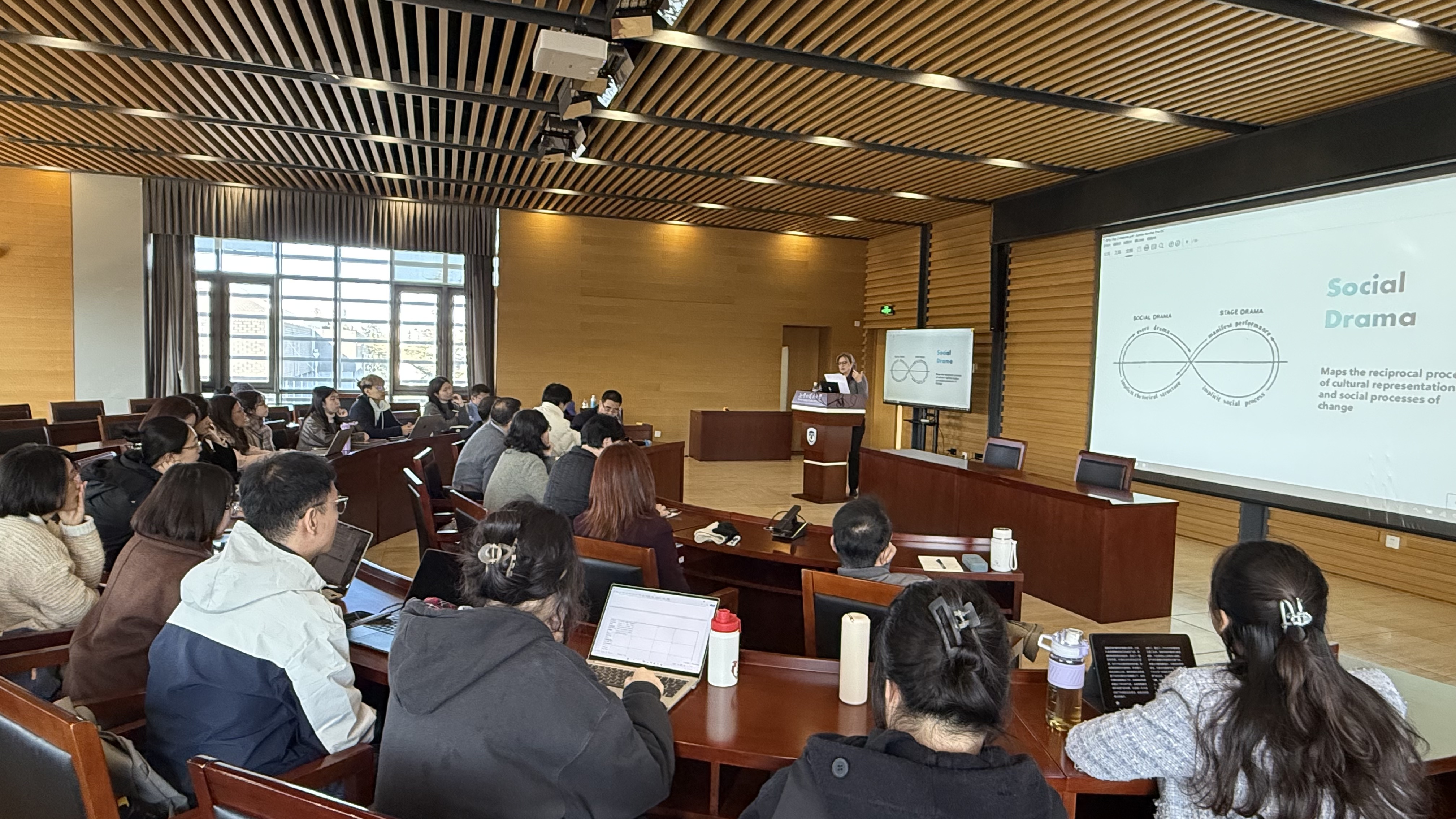 此次专英讲堂的内容丰富,立足学科前沿,予人深刻启迪,既是一堂深入浅出、鞭辟入里的学术盛宴,更是一堂风趣幽默、轻松活泼的知识传授。讲座充分展现了当代美国研究中“社会剧”的最新成果,充分体现出美国研究的跨学科属性,对于促进广大师生深入学习掌握美国研究最新发展动态,促进中美文化交流裨益良多。
