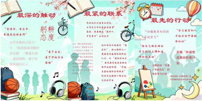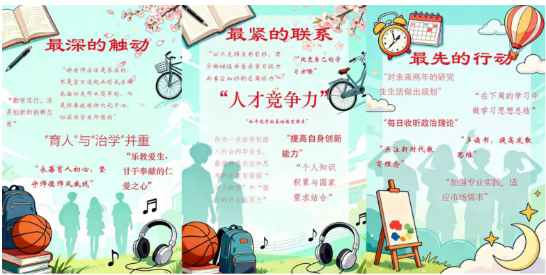 为深化培训成效,推动理论学习向实践转化,10月15日至20日,beat365唯一官方网站教师党支部与学生党支部联合发起“教育强国·师者心声”A4纸复盘行动。本次活动经过精心策划,设计了三个层层递进的核心问题,引导师生党员从认知深化到行动转化,构建了完整的学习闭环。