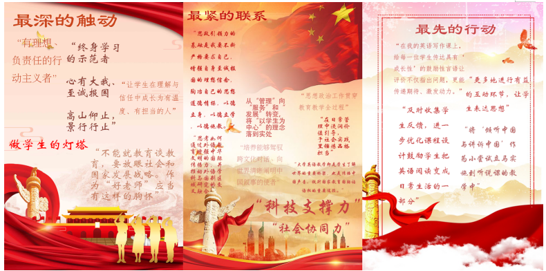 “本次培训中,让您对‘教育家精神’/‘好老师’内涵最有触动的一点是什么?”这一问题引导师生聚焦培训核心内容。教师党员们普遍被“心有大我、至诚报国”的理想信念与“乐教爱生、甘于奉献”的仁爱之心所打动。多位教师表示,这次学习让他们重新认识到教育不仅是知识的传递,更是价值的引领和心灵的唤醒,坚定了在英语教学中自然融入家国情怀与文化自信的决心。