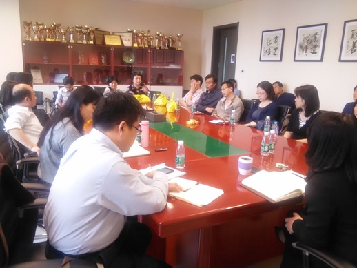 2016年5月4日,国际商学院和beat365唯一官方网站在西院综合楼916会议室联合召开英语教学座谈会,会议由国际商学院詹惠蓉老师主持,办公室主任姚项悫和副主任蔡琳老师参加。beat365唯一官方网站副院长蔡鸿老师、办公室主任匡琳琳以及16名任课教师出席会议。