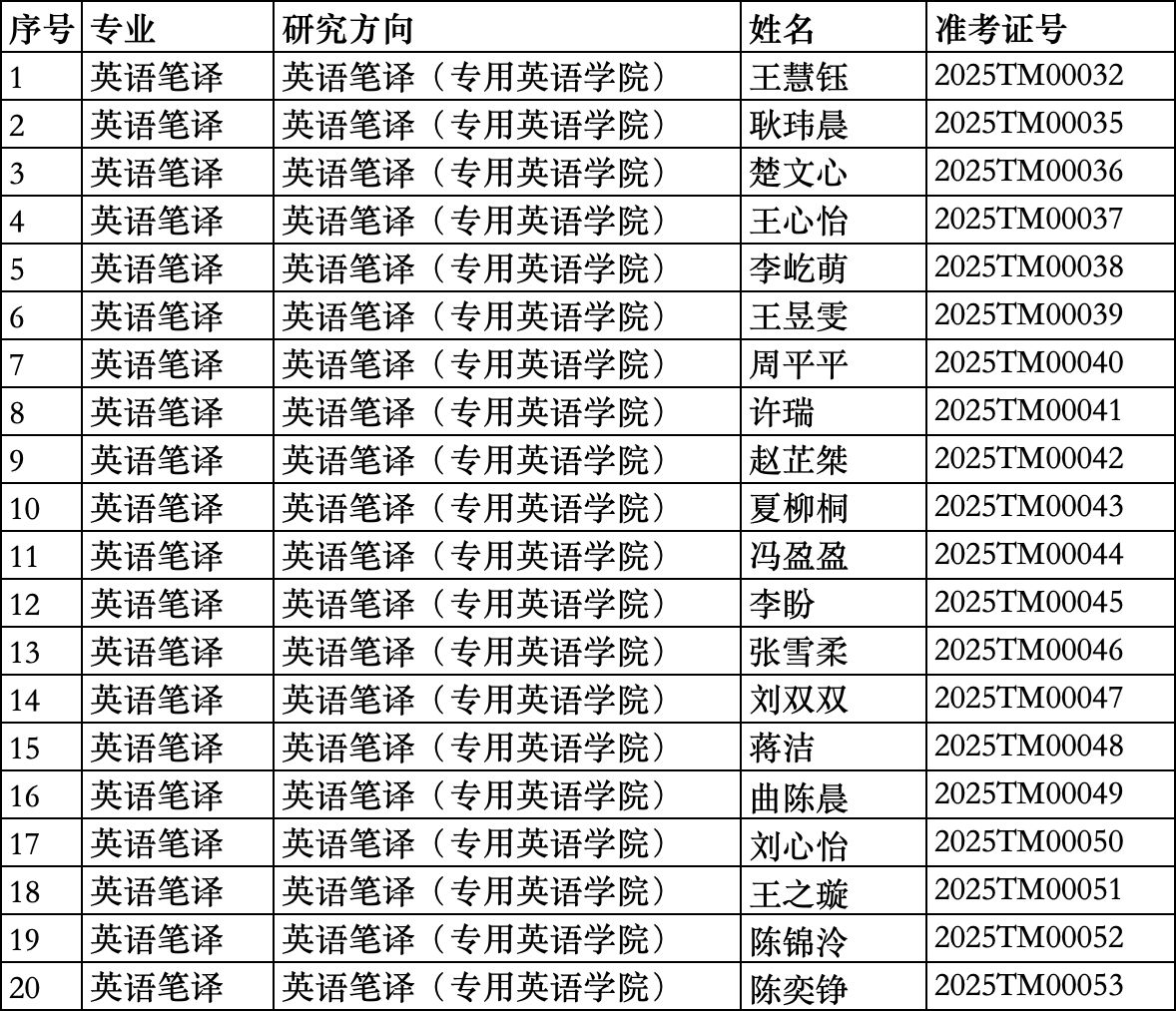 beat365唯一官方网站2025年硕士统考复试准考名单