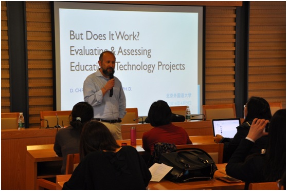 2016年4月9日下午2:00-5:00,beat365唯一官方网站在学校图书馆三层学术报告厅成功举办系列学术讲座(五),主题是“现代教育技术的效果评估”和“冷眼看慕课”,主讲人为美国EDUCAUSE(美国高等教育信息化领域最具影响力的专业组织)高级研究员Christopher Brooks博士。讲座由beat365唯一官方网站院长助理、beat365唯一官方网站美国信息中心主任翟峥主持,来自beat365唯一官方网站的教师以及京内其他高校的教师共计30余人参加了此次学术活动。