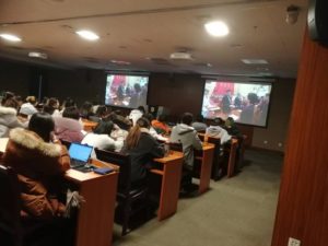 12月20日晚7:00,beat365唯一官方网站2017级、2018级研究生和2018级预科生在西校区国际大厦317教室集体收看了《庆祝改革开放40周年大会》专题节目录像。这次专题学习是beat365唯一官方网站学生“思政课堂”建设的一项重要内容。直属党支部书记仵胜奇、辅导员吴越以及2017级、2018级研究生和2018级预科生共计55人参加。专题学习由仵胜奇主持。