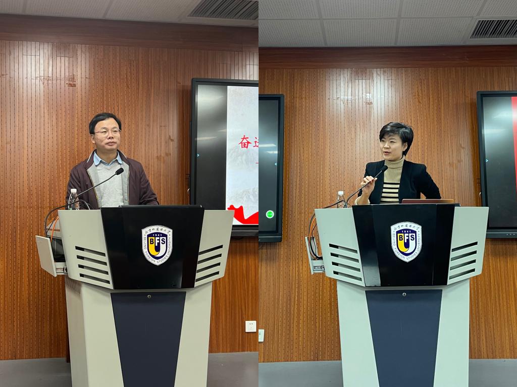 王薇薇在主持总结环节时分享了学习专题党课的三点体会。一是要坚持党的领导,将学习十九届六中全会精神与落实总书记回信精神和党史学习教育相结合;二是要传承红色基因,将党史与校史相结合,坚持北外为党育人为国育才的初心使命;三是要理论指导实际,从学校实际出发,为双一流建设以及学校的平稳较快发展做出贡献。